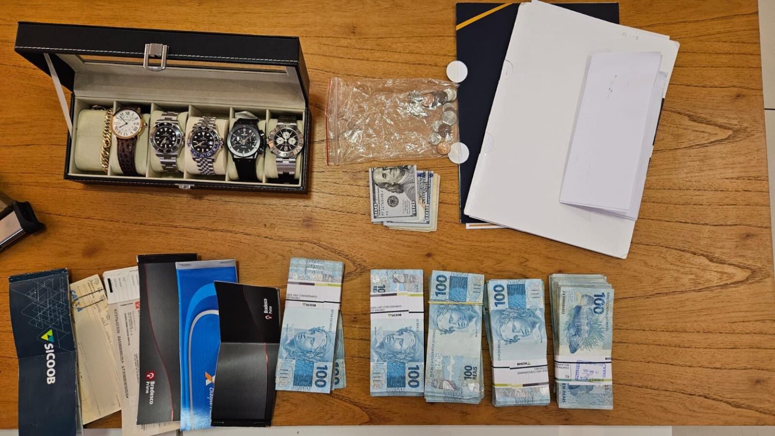 Além do dinheiro, a PC também apreendeu cartões de crédito e relógios de luxo.