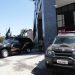 Em imagens da câmera de segurança do local, o motorista posiciona a traseira do carro em frente ao estabelecimento e dá ré, batendo na porta do local.
