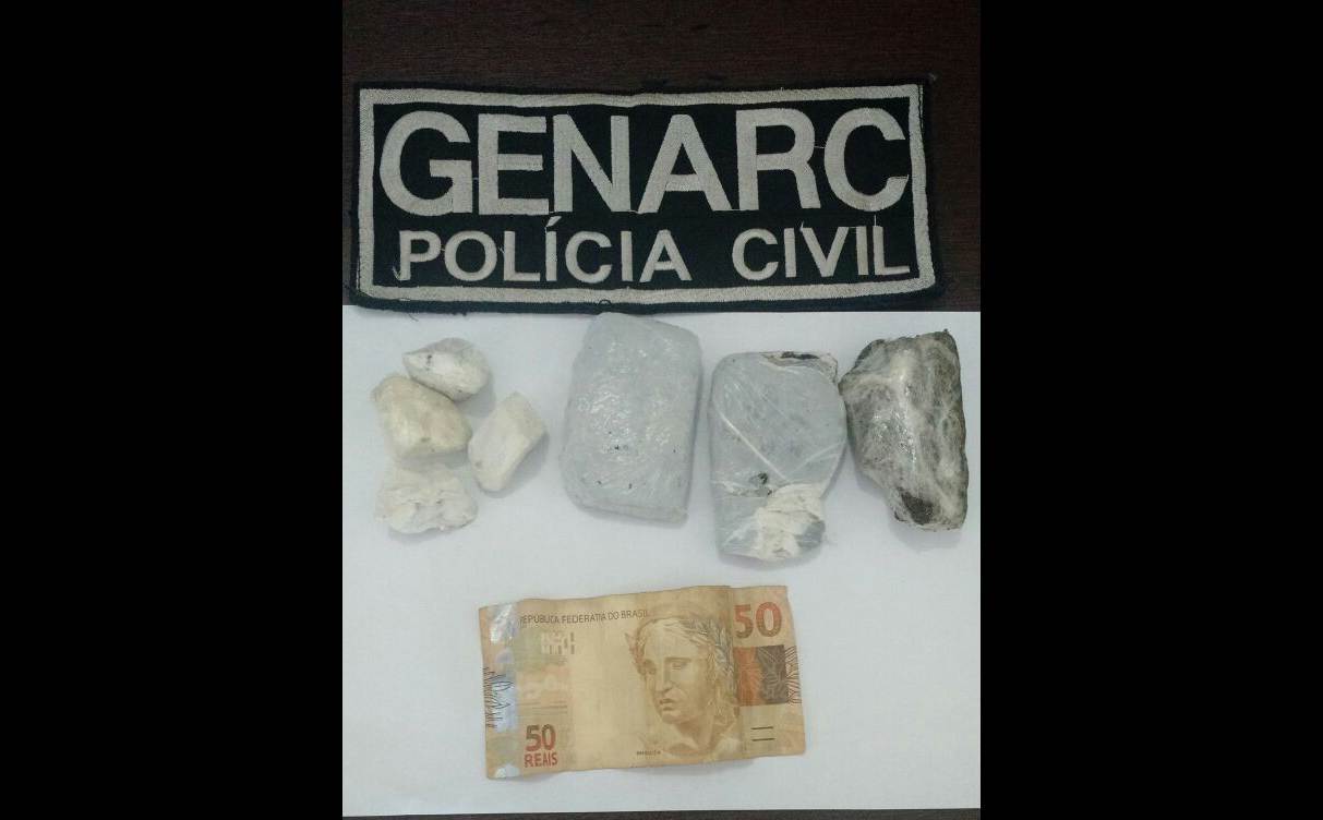 Ao final do procedimento, foram retiradas quatro porções médias de crack, três porções médias de maconha e uma nota de cinquenta reais. Com o flagrante em mãos, a equipe do Genarc conduziu Emiliana até a sede da unidade especializada, onde ela foi autuada pelo crime de tráfico de drogas. Por fim, agora na condição de presa, ela foi levada ao Presídio Local, onde passará à disposição da Justiça.