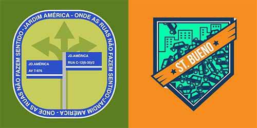 Entre os bairros mais importantes da cidade, o América e o Bueno também foram tema de inspirados logotipos. E, como não poderia ser diferente, a crítica social foi certeira: a dificuldade que o goianiense tem para se locomover no trânsito, seja pela falta de planejamento das vias ou pela quantidade excessiva de veículos circulando.