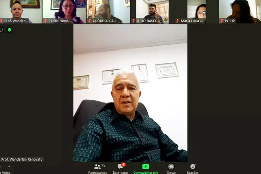 Secretário Wanderlan Renovato em reunião virtual para discutir estratégias para a Educação Infantil e Fundamental de Aparecida em 2020 | Foto: Reprodução