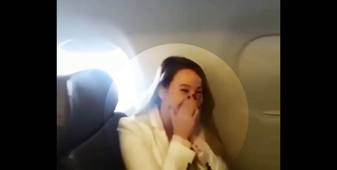 Momento em que namorada foi surpreendida no voo. | Foto: Divulgação