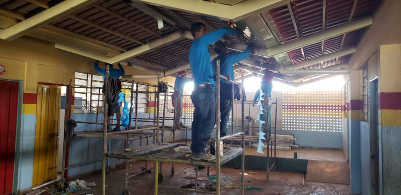 Para a reforma da Escola, foi assinado um contrato emergencial com a empresa PRS Projetos Representações e Serviços LTDA, que prevê a entrega da obra em 2 etapas.
