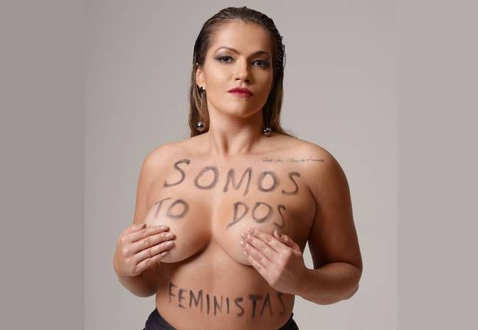 Ela ainda relatou que a foto a inspirou a fazer o novo ensaio em um momento importante de sua vida. “Uma fase de mudança e quebra de padrões. Por que não escrever no meu próprio corpo nu e fora de forma (com 15 kg a mais) uma frase que me inspira e me representa? Realmente penso que, sim, mulheres e homens querem direitos iguais”, afirmou.