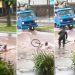Ciclista cai e é arrastado pela enxurrada durante temporal em Goiânia