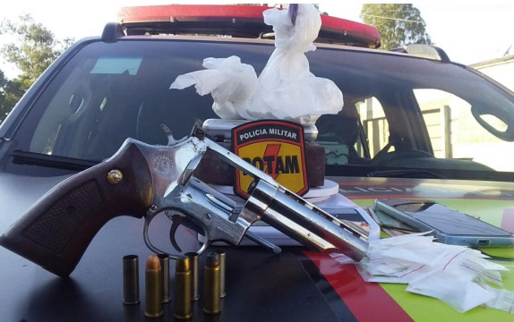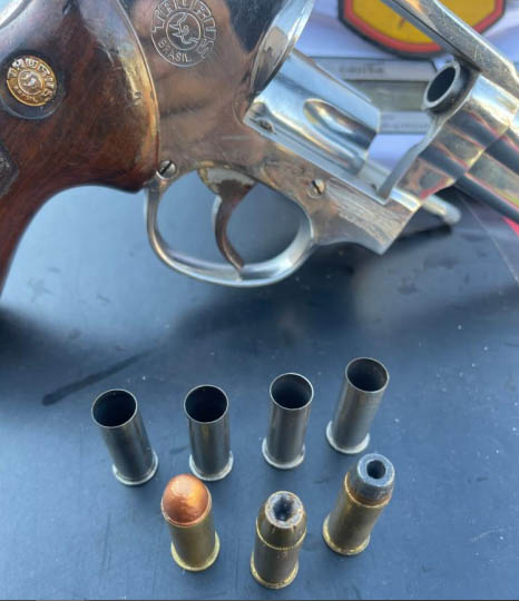 Durante as buscas, foi apreendido 1 revólver calibre .38 sem numeração aparente com 6 munições.