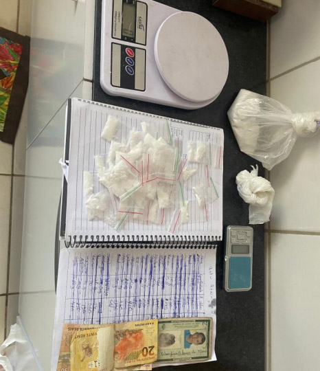 Além disso, também foram encontradas no endereço 41 porções de cocaína embaladas para comercialização, 2 porções grandes de cocaína, R$ 70 em espécie, 1 prensa artesanal e 2 balanças de precisão.