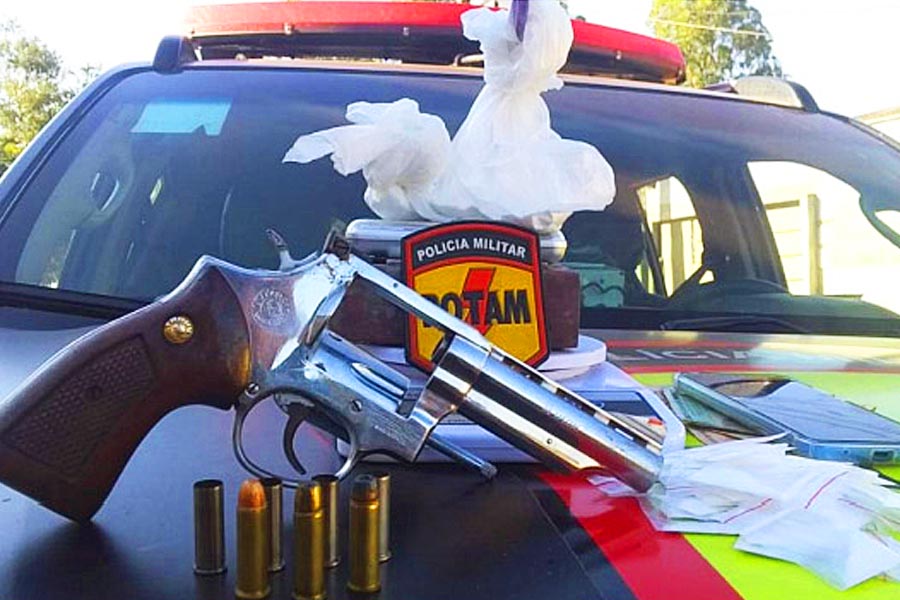 Durante as buscas, foi apreendido 1 revólver calibre .38 sem numeração aparente com 6 munições.