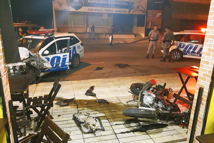 Após perseguição, a viatura acabou colidindo frontalmente com a motocicleta e o homem foi arremessado a uma distância de cerca de 10 m.