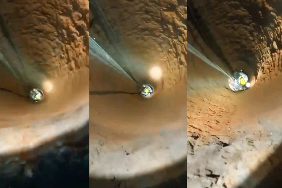 No vídeo registrado no momento do resgate mostra o menino e um soldado do Corpo de Bombeiros sendo puxados por uma espécie de tripé manual para fora do buraco.