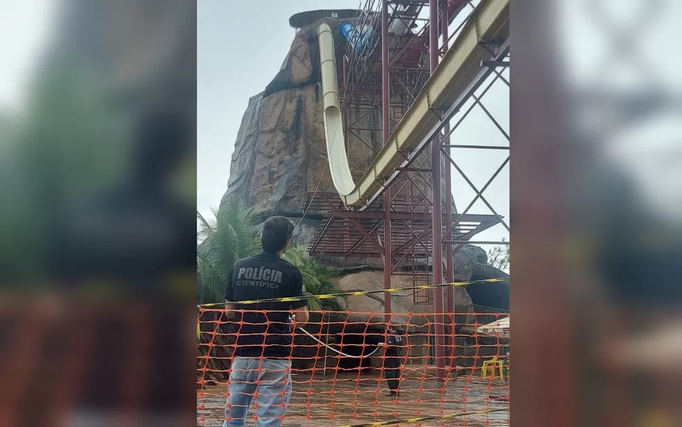 Garoto de 8 anos morre após cair de toboágua em Caldas Novas (Foto: Polícia Técnico-Científica)