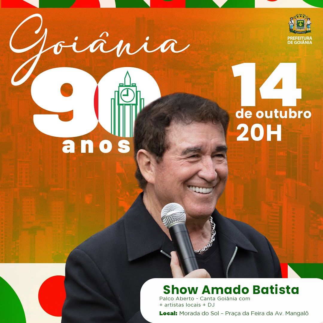 O show do cantor Amado Batista está marcado para este sábado (14), na Praça da Feira, no setor Morada do Sol.