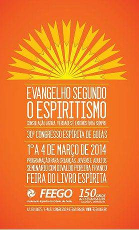 Goiânia receberá a 30ª edição do Congresso Espírita do Estado de Goiás, no Centro de Cultura e Convenções e no Lar Francisca de Lima. O evento será realizado de 1º a 4 de março e este ano homenageará O Evangelho Segundo o Espiritismo, uma das obras básicas espíritas, que completa 150 anos em abril.