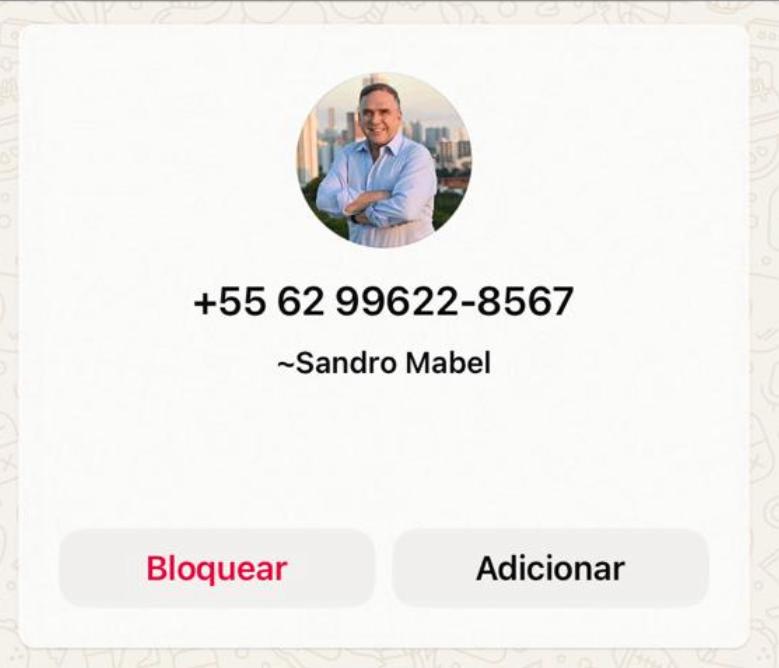 Conforme divulgado pela assessoria de Sandro o número utilizado no golpe é o seguinte: (62) 99622-8567.
