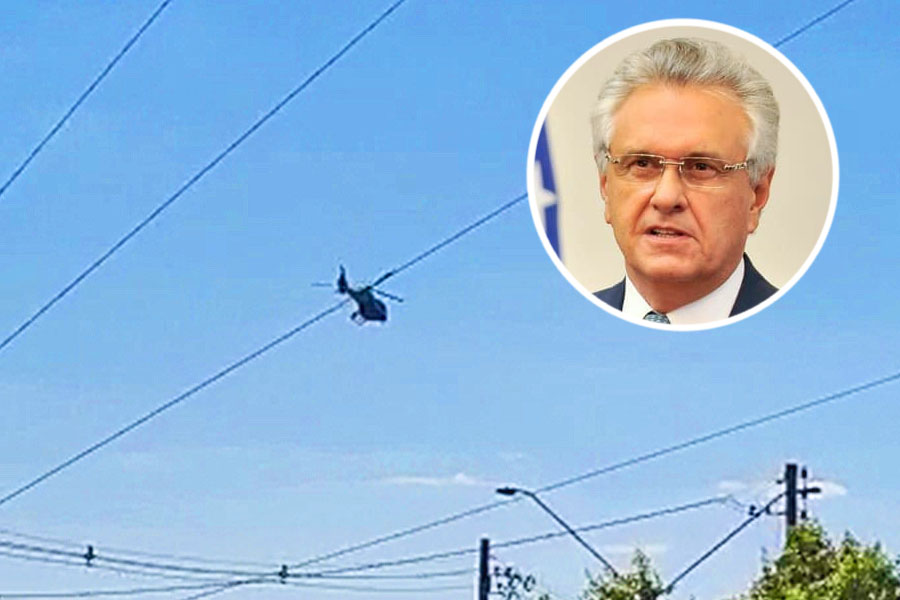 Governador Ronaldo Caiado chega a Aparecida de helicóptero | Foto: Folha Z