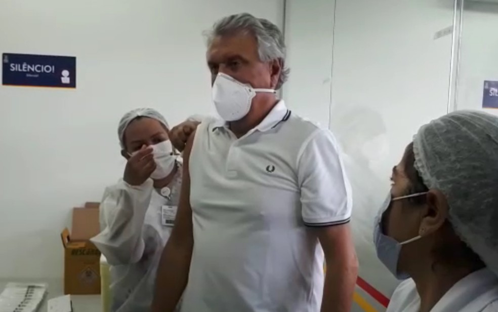 Na manhã desta 3ª feira (23), o governador Ronaldo Caiado (DEM), de 71 anos, recebeu a primeira dose da CoronaVac.