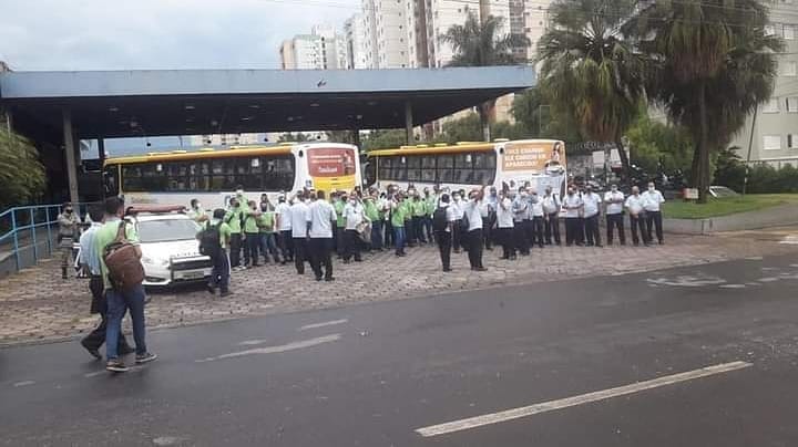 Uma movimentação desses trabalhadores foi registrada em frente à garagem da Rápida Araguaia, no Setor Jardim Presidente, na capital.
