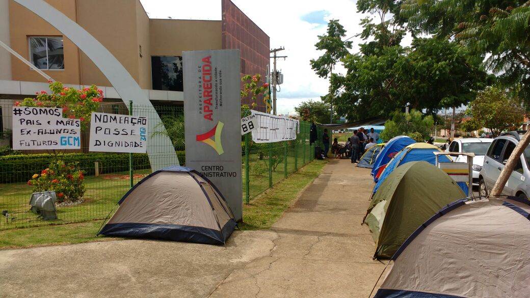 Acampado em frente à Prefeitura de Aparecida, grupo quer convocação de aprovados em concurso da Guarda