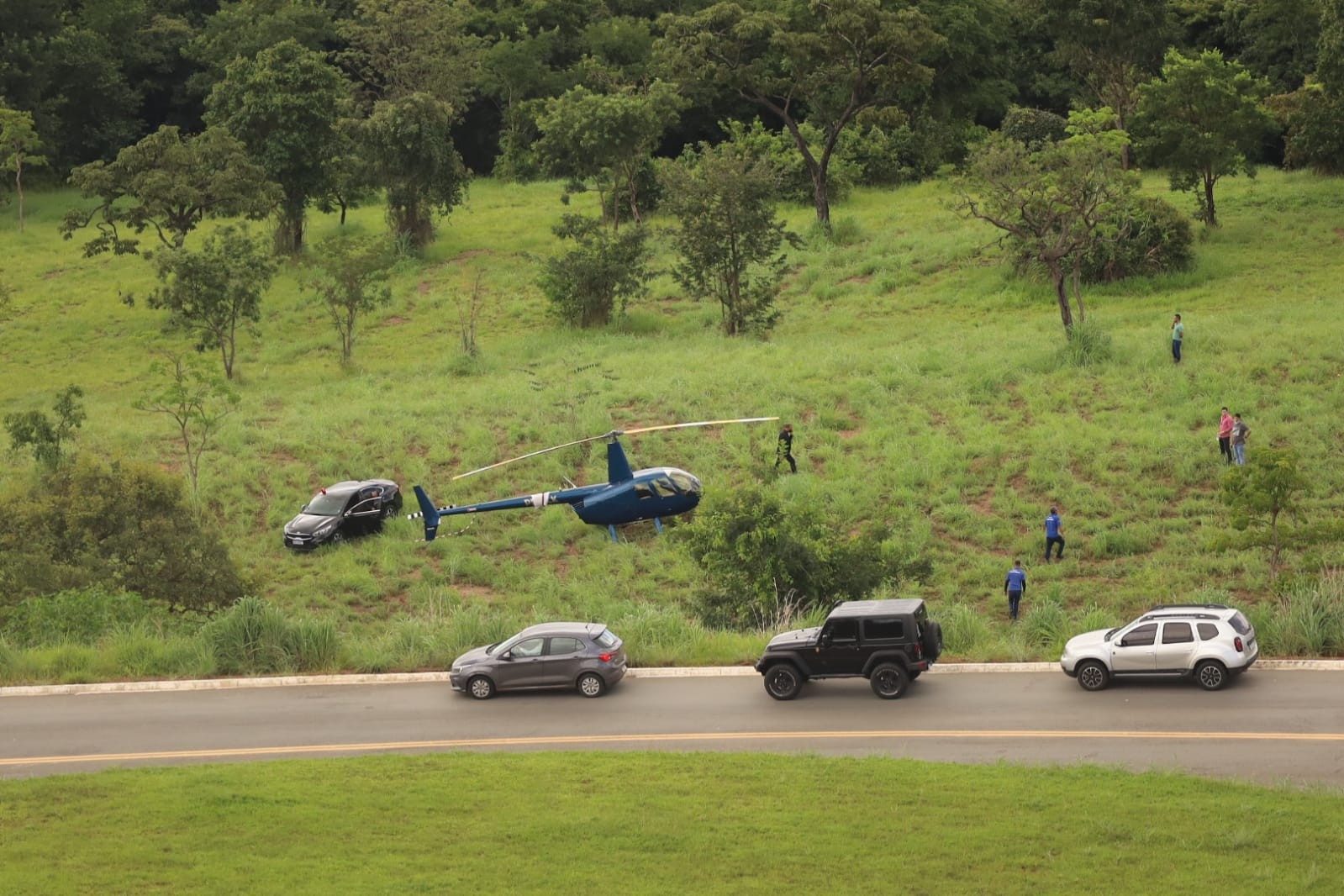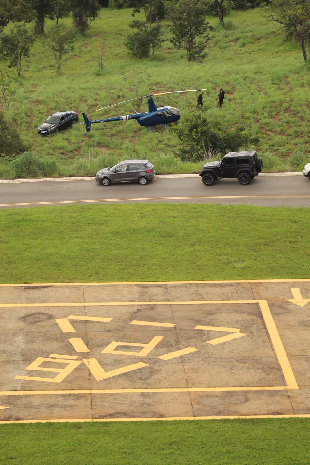Um helicóptero perdeu o controle ao decolar do heliponto da Prefeitura de Goiânia e precisou pousar no gramado próximo ao prédio.