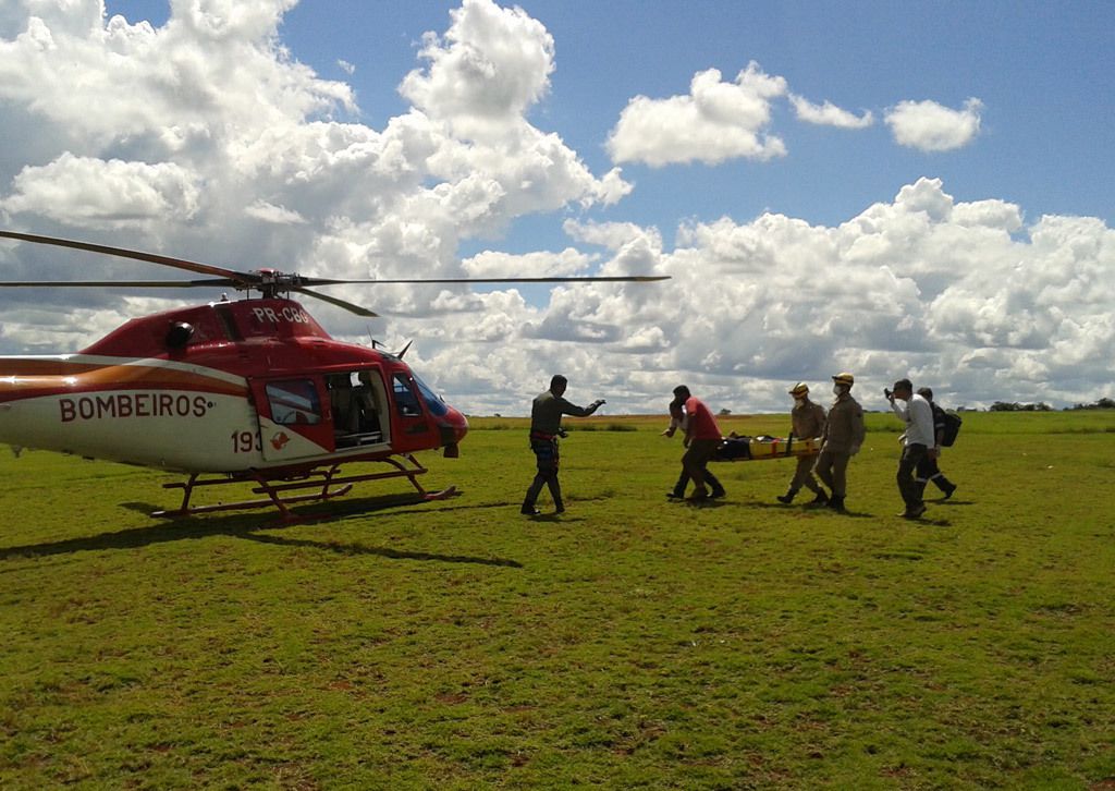 O homem foi socorrido e encaminhado de helicóptero ao Hospital de Urgências de Goiânia (Hugo) em estado regular. Não há informações de como aconteceu o acidente.