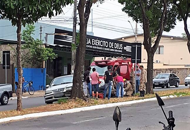 Uma homem bateu o carro contra uma árvore após desmaiar enquanto dirigia na Avenida C-104, no Jardim América, em Goiânia.