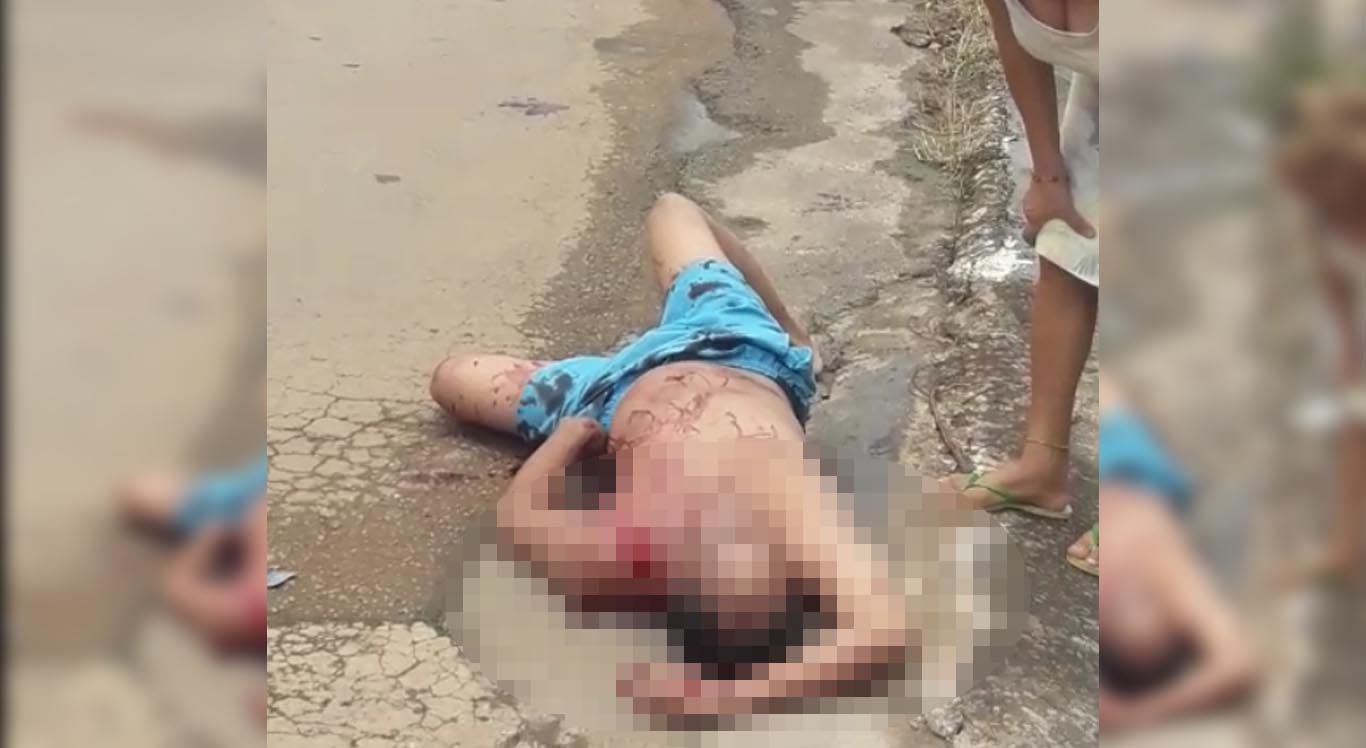 Um vídeo registrou a vítima caída no chão com o peito ensanguentado.