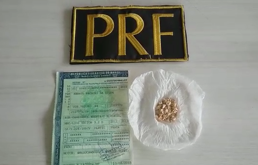 Segundo a PRF, os agentes abordaram uma caminhonete com dois ocupantes. Ao vistoriar o veículo, os policiais encontraram na mala do suspeito uma porção de ouro envolvida em um saco plástico.