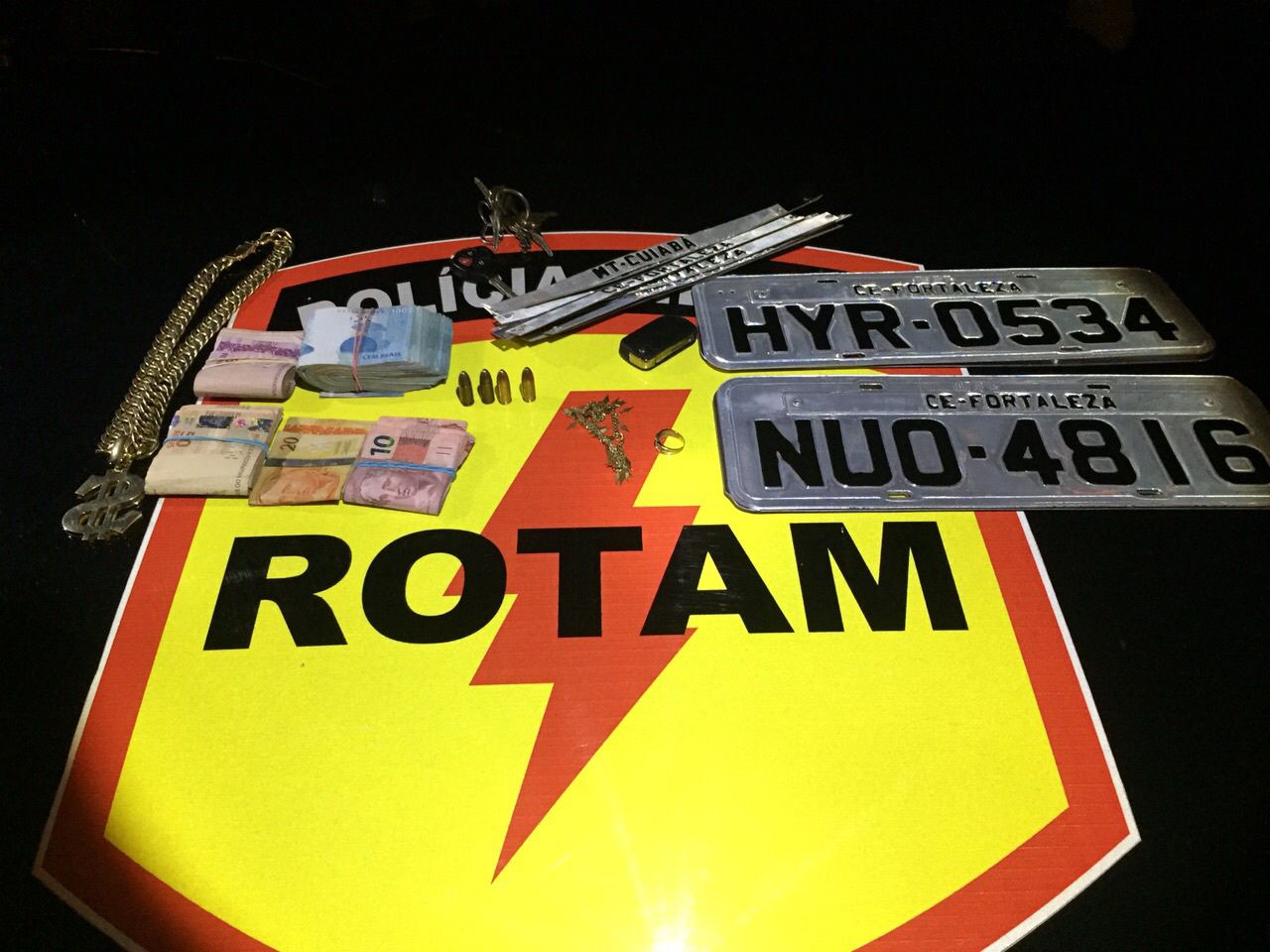 Além do veículo, foram encontrados com o suspeito quatro munições de pistola calibre 9mm e R$13.277,00 em espécie.
