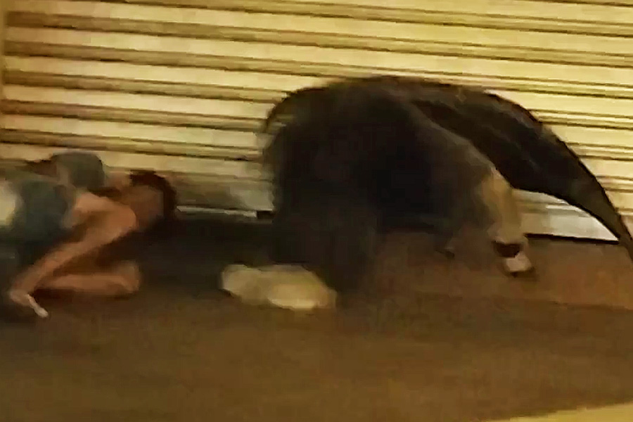 Tamanduá-bandeira foi flagrado caminhando tranquilamento pela região central da cidade na noite dessa 5ª (18) | Foto: Reprodução