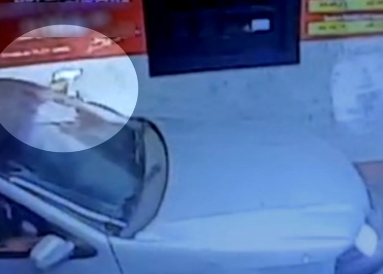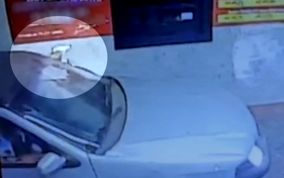 Imagens de câmera de vigilância mostram o momento em que ele saca o revólver. A mulher que o acompanha ainda tenta impedi-lo.