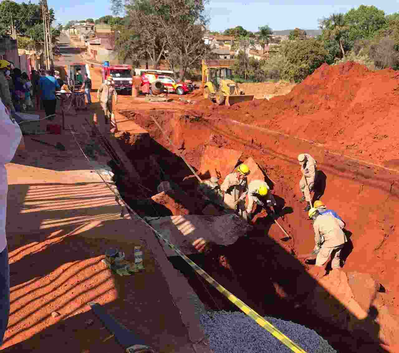 Um homem de 45 anos morreu ao ser soterrado enquanto trabalhava em uma vala de galeria pluvial na Rua Gercina Borges Teixeira, no Madre Germana 2, em Goiânia.
