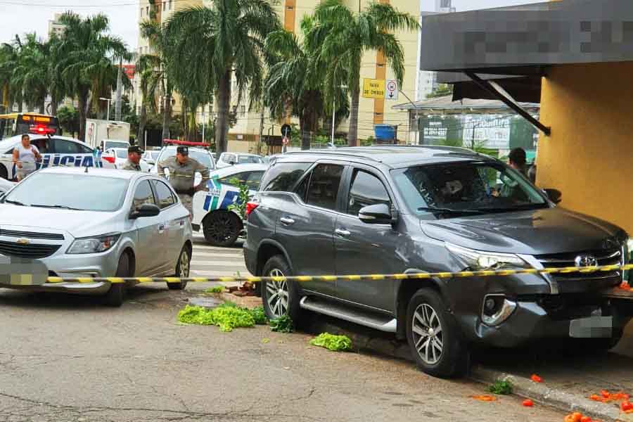 De acordo com testemunhas, a vítima havia parado sua camionete Toyota Hilux no semáforo quando foi abordada por 2 homens em uma motocicleta.