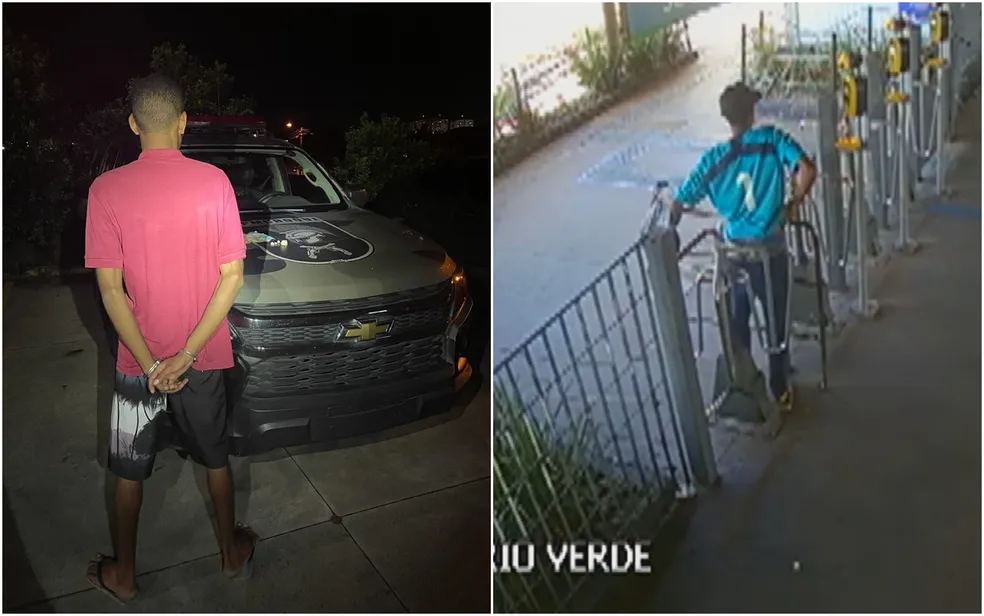 Pouco tempo depois, outro indivíduo de bermuda saiu na companhia do suspeito, que pulou uma grade e saiu andando.