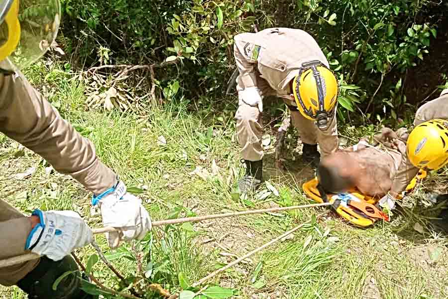 De acordo com o Corpo de Bombeiros, ele estava em uma região de mata fechada, em uma depressão de difícil acesso.