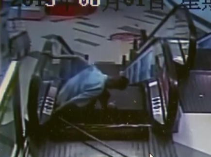 Homem fica preso na escada rolante (Foto: Reprodução)