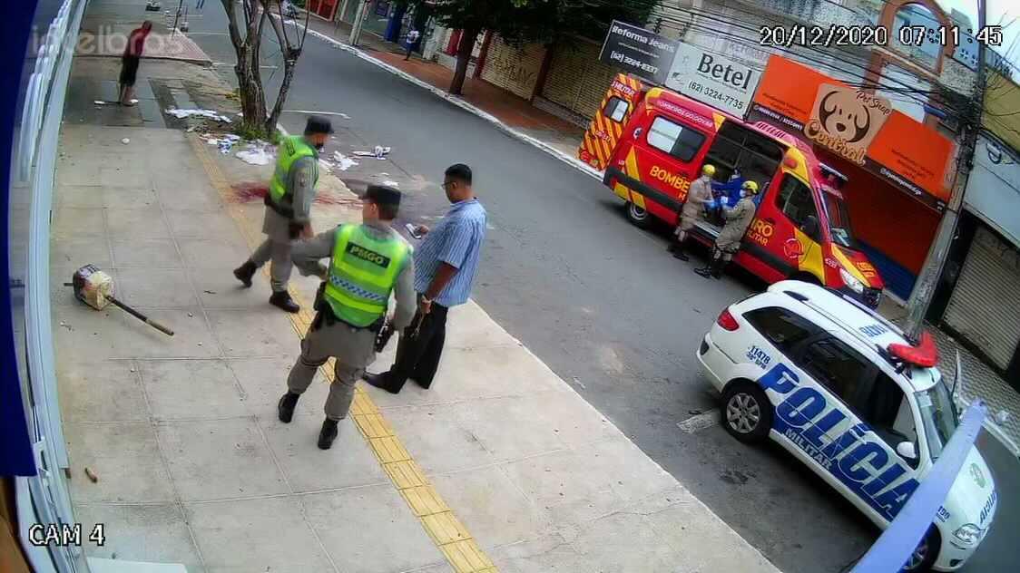 Câmeras de segurança flagraram o momento em que um homem tenta matar outro na madrugada desse domingo (20) na Rua 8, no Centro de Goiânia.