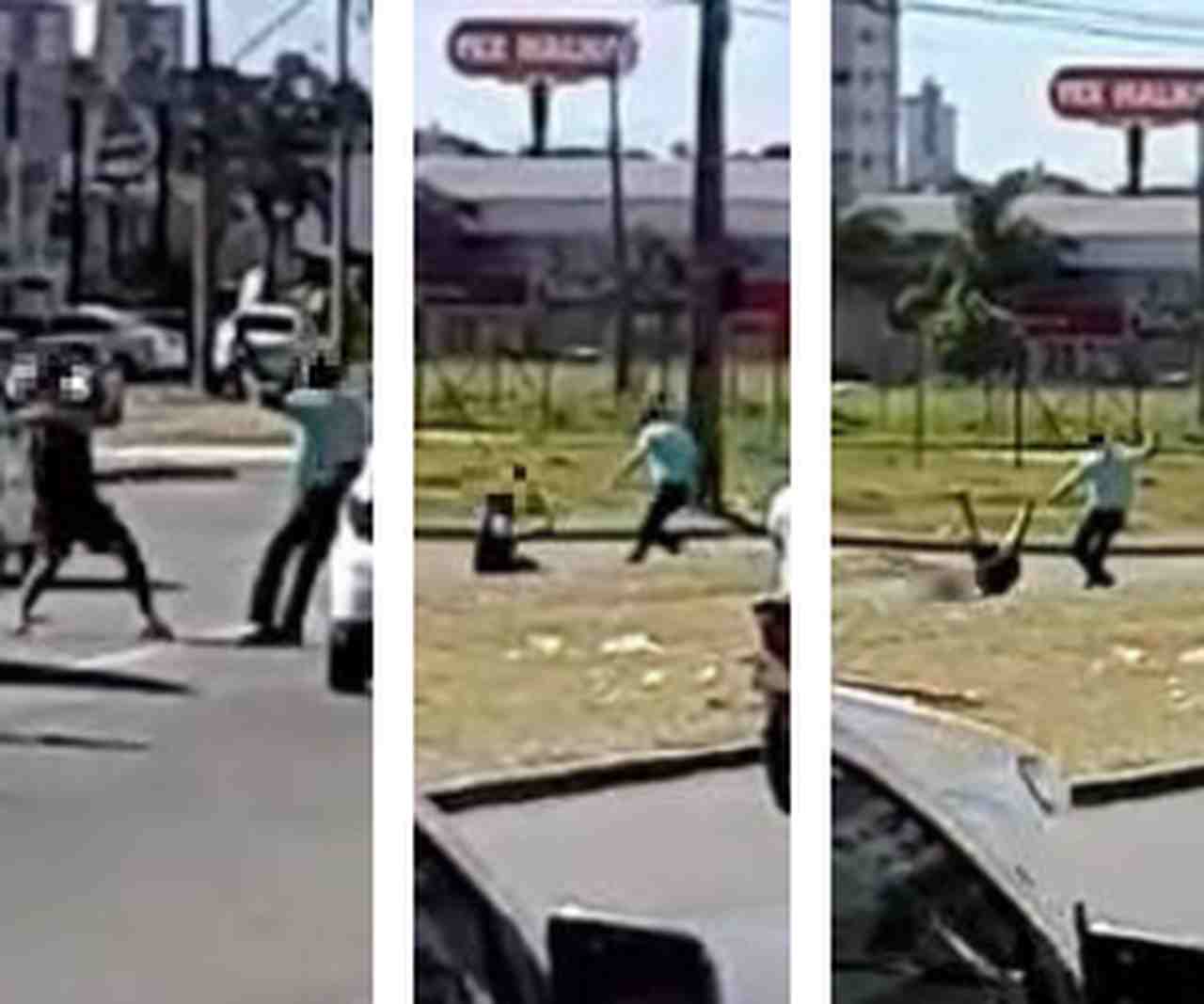 Os 2 começaram a discutir em um lado da via e atravessaram para o outro trocando agressões físicas.