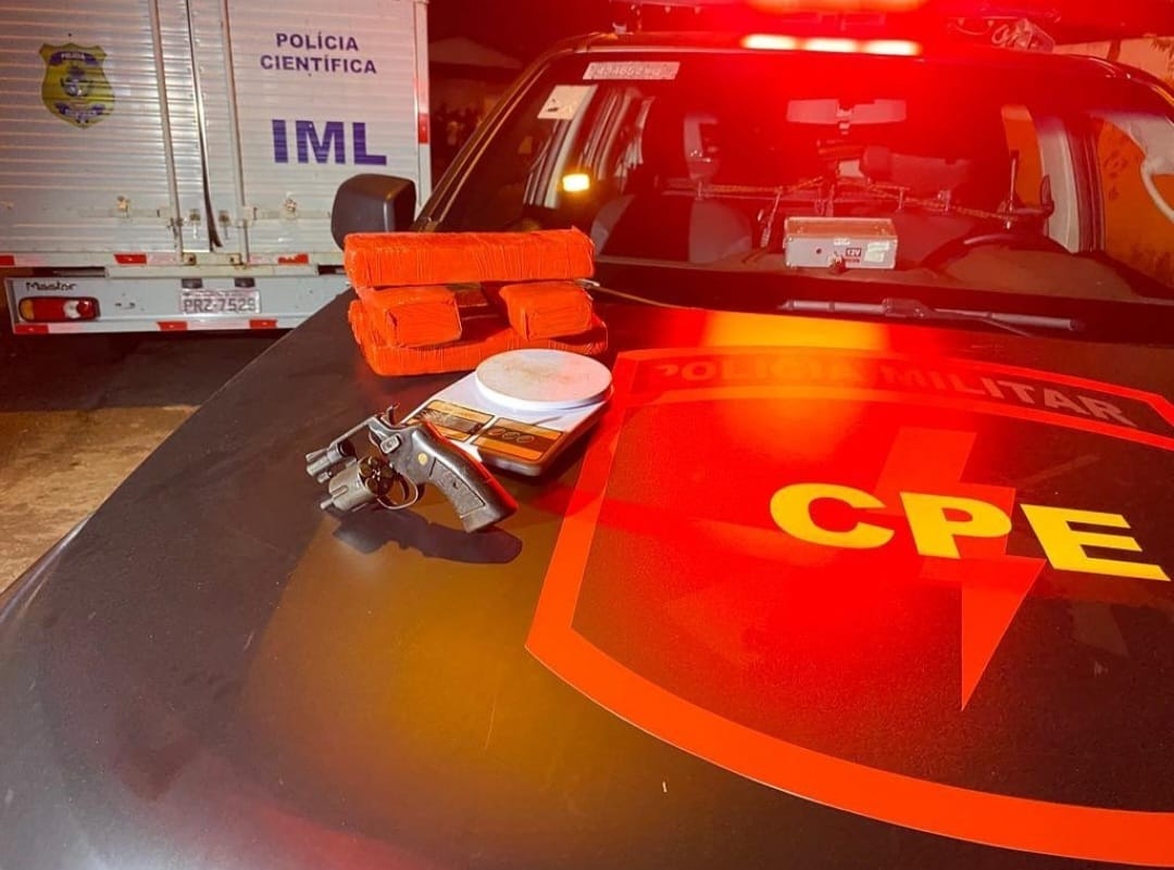 Uma arma e uma grande quantidade de drogas foram apreendidas.