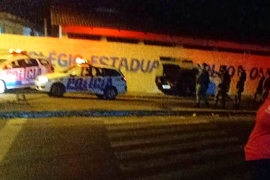 Foi então que, baleado pelo menos 5 vezes, o homem perdeu o controle da direção, atravessou a rotatória e acabou colidindo e derrubando o muro do Colégio Estadual Rodolfo de Oliveira.