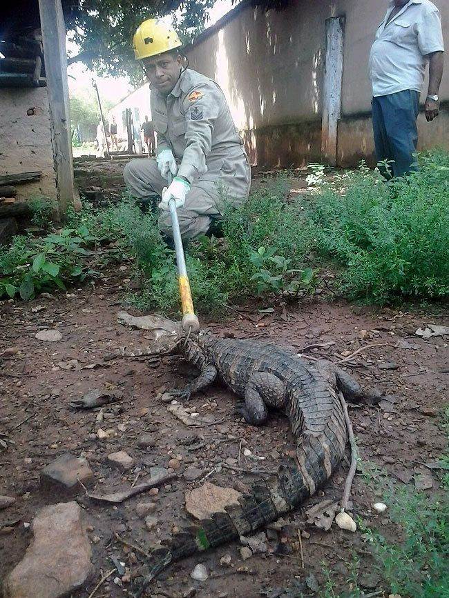 Uma família de Jaraguá, cidade a cerca de 120 quilômetros de Goiânia, levou um grande susto na manhã desta segunda-feira (30). Um jacaré foi encontrado no quintal da casa.