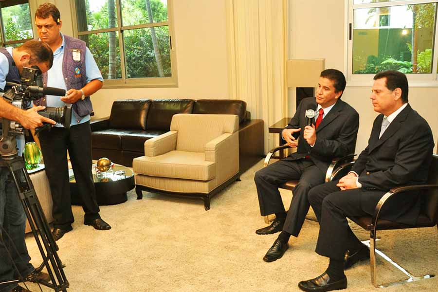 Jordevá em entrevista ao então governador Marconi Perillo | Foto: Reprodução