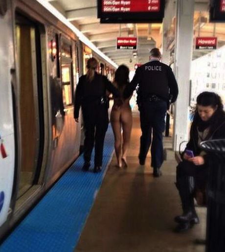 Os passageiros de uma linha de trem da cidade norte-americana de Chicago, nos Estados Unidos, foram surpreendidos enquanto esperavam para embarcar. Uma jovem tentava seguir viagem totalmente nua e acabou sendo presa pelos policiais.