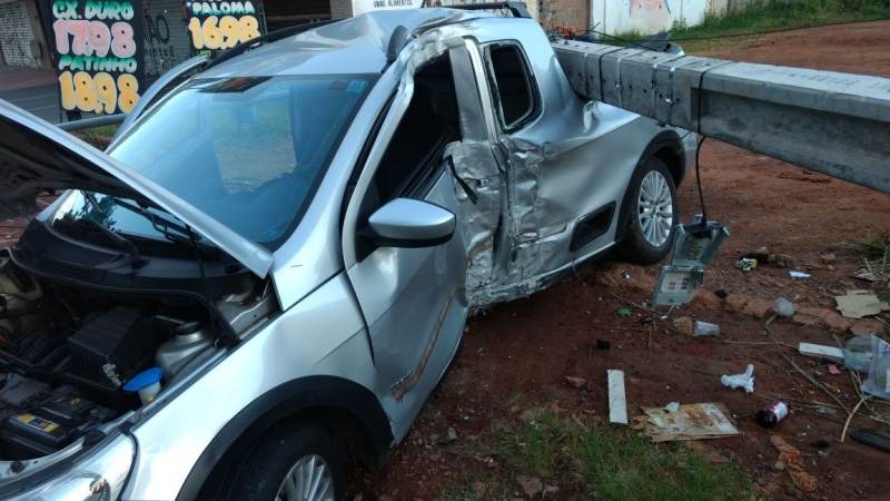 Jardim América – Um motorista perdeu o controle do veículo (Volkswagen Saveiro) e bateu contra um poste de iluminação pública na Avenida T-9, próximo ao Ginásio de Esportes localizado na Praça do Imigrante Italiano.