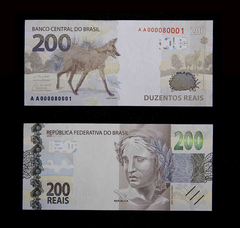 A nota, que é a sétima da família do Real, homenageia o lobo-guará.