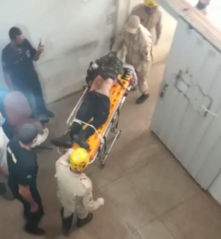 Corpo de Lázaro levado por bombeiros | Foto: Reprodução