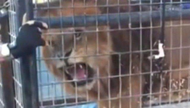 No vídeo breve, um leão conhecido como Bubba é visto rosnando e agressivamente arranhando as barras de seu minúsculo recinto depois de um homem ter se aproximado e esfregado a gaiola. Com base nos ruídos, parece que a intenção dele foi a de agitar o animal.