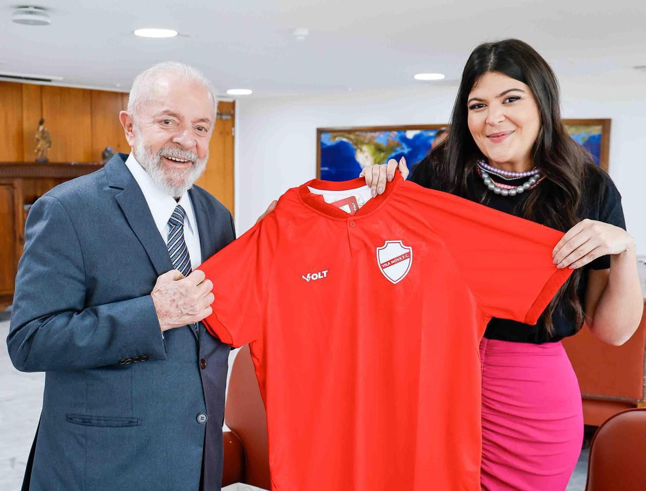 O presidente Lula (PT) recebeu o uniforme do Vila Nova Futebol Clube.