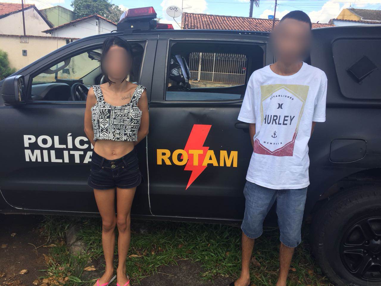 O casal foi abordado pela Rotam (Rondas Ostensivas Táticas Metropolitanas) no Setor Novo Atlântico, em Goiânia.
