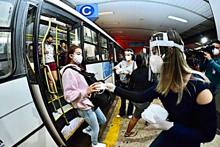 Distribuição de máscaras no transporte coletivo de Goiânia | Foto: Divulgação / Governo de Goiás