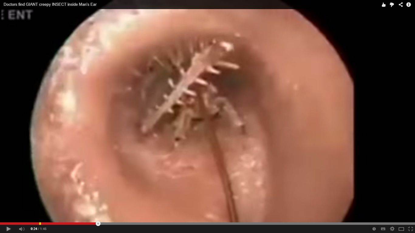 Em vídeo que rapidamente se transformou em viral na internet nos últimos dias, médicos retiram inseto gigante do ouvido de homem. Com uma pinça, é removido um inseto do tamanho de um dedo indicador.